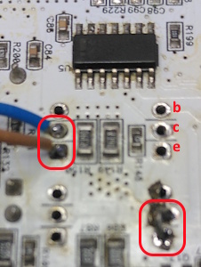 Je mesure l'état de tous ces composants et ils sont ... tous bons ! Seule conclusion possible : pour une raison inconnue le processeur n'envoie pas le signal logique d'activation du moteur. Je ne vais malheureusement pas pouvoir avancer plus loin. Cela m'agace. Il est temps de penser différemment. Au lieu d'essayer de réparer, je cherche maintenant un solution "latérale". J'ai juste besoin que la brosse tourne ... et en plus que dans un seul sens ! Donc un pont H était déjà du luxe, car la machine n'utilisait sans doute pas la marche arrière ! Donc en fait il suffit d'alimenter en direct le moteur dans le bon sens, et bien sûr de pouvoir l'éteindre et l'allumer facilement. Je dessoude les 4 transistors de puissance, je ponte d'un côté pour mettre le moteur à la masse et j'amène l'alimentation de 14V sur l'autre borne du moteur via un interrupteur ! Et ça marche ! Bête et méchant ? Non simple et efficace : l'aspirateur aspire, c'est tout ce qu'on lui demande !