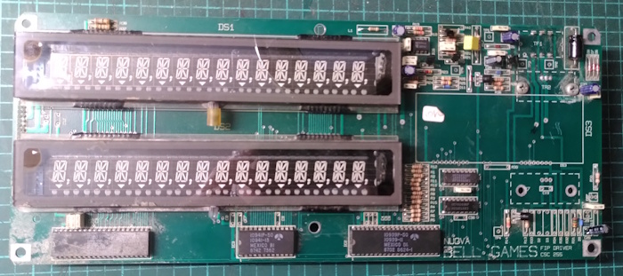 Le 2ème exemplaire a été hacké et le plateau est toujours en cours de restauration. Mais comme j'ai une machine complète opérationnelle, j'enlève le fronton et installe le 2ème à la place ! La machine ne démarre pas, aucune activité autour du microprocesseur 6802. Je le remplace et c'est reparti !