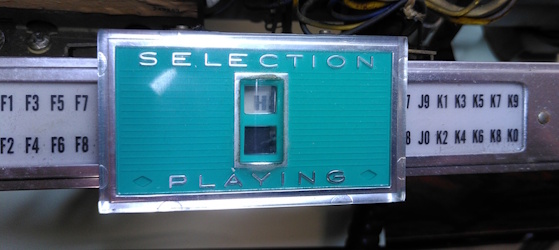 Lors des tests, la seule anomalie encore découverte est que si on sélectionne K9, ma machine joue K0 et si on sélectionne K0, il ne joue ... rien ! Je nettoie encore plus attentivement ces plots Tormat, mais ce n'est pas ça. Je vérifie le positionnement de la barre Tormat par rapport au bloc de lecture, c'est limite, je la déplace légèrement et bingo, K0 est bien sélectionné ! J'ai l'impression que le phonographe s'inverse un peu top tôt, je tente le coup et déplace légèrement la butée pour que l'inverseur bascule lorsque le phonographe est tout juste au delà du panier à disque. Mais pas trop loin car sinon le phonographe risque de buter contre le châssis sans inverser et il va cogner sans fin, ce qui n'est pas bon du tout évidemment ! Et oui, avec ce léger déplacement de butée, c'est bon, il sélectionne K9 ! Il reste encore un détail à régler, il y a aussi une butée pour faire glisser le cache sur l'afficheur du Disk In Play, ce réglage est très délicat à faire pour que le cache se place bien. Cela m'a pris plus de temps que le reste !