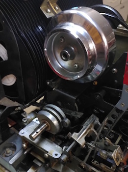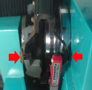 Lorsqu'un disque joue en face A, au milieu du disque l'aiguille n'avance plus ! Je regarde et oups la brosse bloque l'aiguille de l'autre côté ! Sur ces modèles anciens les brosses sont fixes de chaque côté et les aiguilles s'y frottent lors de la lecture ! J'écarte la brosse en pliant la lame de soutien et c'est bon. Seeburg s'est rendu compte du problème car sur les machines ultérieures, ce sont les brosses qui sont mobiles et qui nettoient les aiguilles lors du retour de la tête en fin de lecture, solution plus complexe mais bien meilleure.