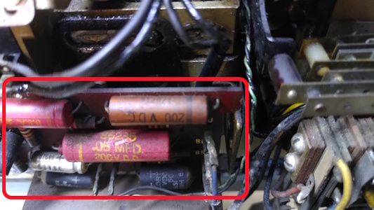 Le son est correct mais faible et j'ai un affreux "poc" dans les haut-parleurs lors de l'inversion de marche du phonographe, mais cela n'arrive que d'un seul côté du chassis. En fait c'est le contact de soustraction (qui décompte les 2 allers-retours) qui provoque ce gros parasite dans l'ampli malgré le mute activé. Je vérifie la documentation et je suis surpris de découvrir une dizaine de "Service Bulletin", notes aux techniciens pour aller sur place corriger quelques soucis de design découverts au fil du temps. Quand il y en a beaucoup, cela signifie que ce modèle n'était pas au point, encore un peu prototype. La majorité des améliorations à réaliser concerne justement le filtrage et la limitation des bruits parasites. Tiens, tiens. Je vérifie sur ma machine mais toutes les modifications recommandées ont bien déjà été réalisées, zut.