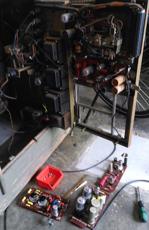 Le propriétaire a cherché un bon moment avant de me trouver. La machine est en bon état, mais l'électronique est entièrement à tubes, encore un nouvelle architecture à apprendre ! Heureusement la documentation existe.