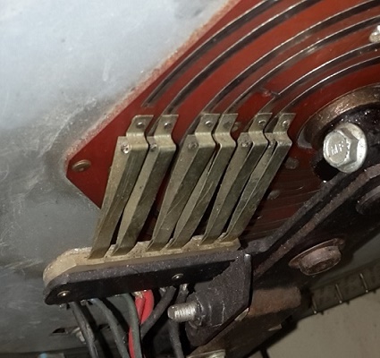 Il y a 4 contacteurs (identifiés 1, 2, 2A, 3) en bout d'axe de rotation du bras de transfert qui s'activent en fonction de diverses cames réparties sur les 360° de l'axe. Une cosse est cassée et est vite remplacée, les contacts me semblent dans un état limite, mais en les activant plusieurs fois, ils ont l'air de refaire contact correctement.